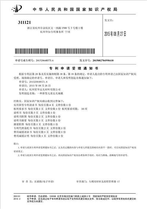 反光卡通圖案顏色為銀灰色反光卡通圖案時,圖案位置反光亮度大于330cd/(lx?m2)。