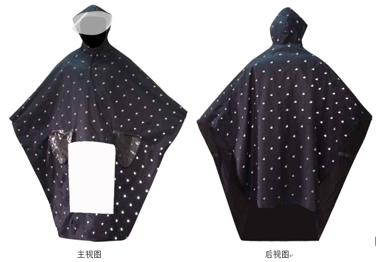 雨披本體上有花式反光圖案,雨披本體面料為防水面料。